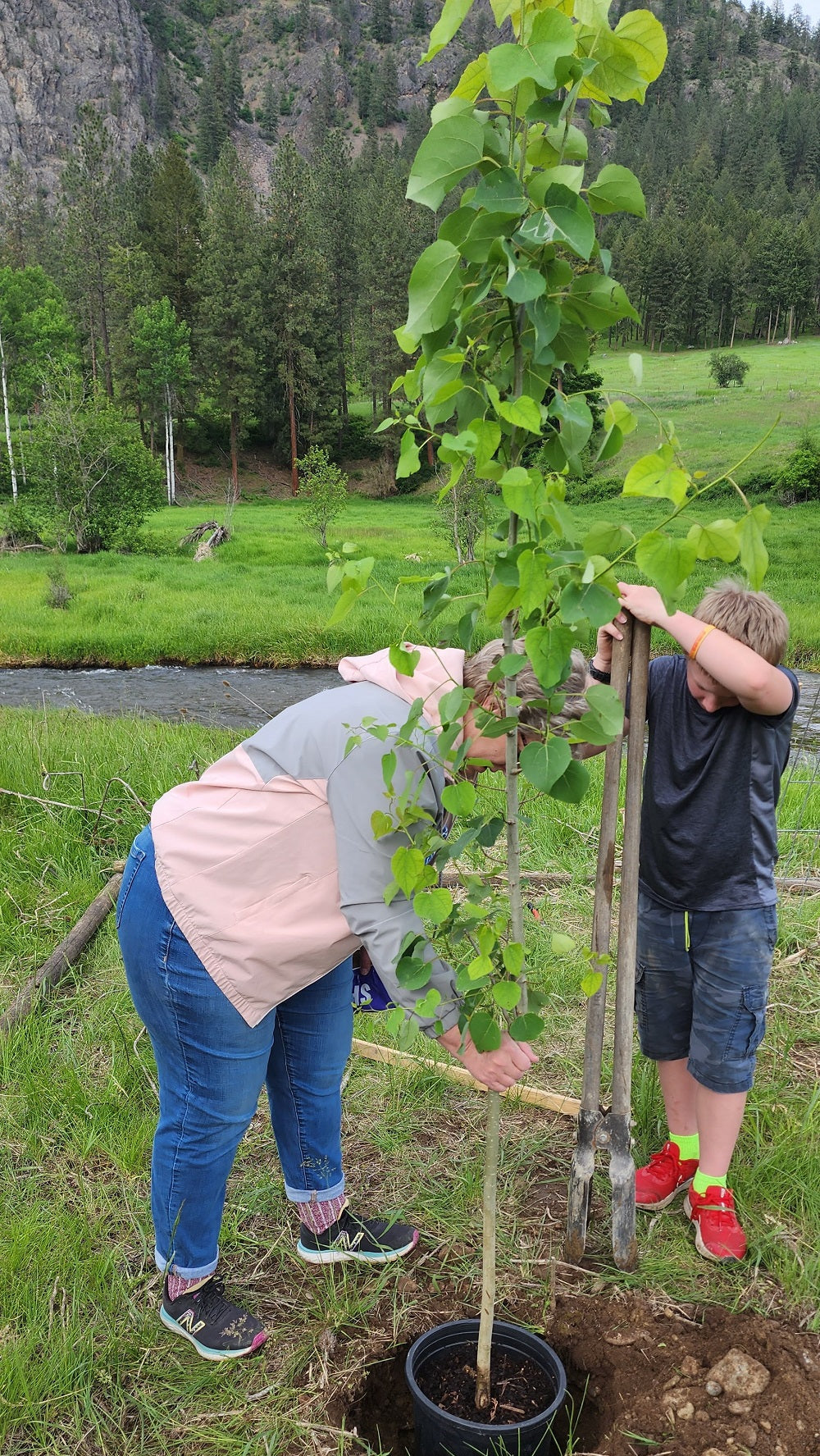 Native plants like willows, alders, and cattails stabilize creek banks and improve water quality. This year, we planted 1,700 trees, including Western larch, willows, and aspen, to help reforest the surrounding landscape. With deep roots and broad canopies, these plants reduce erosion, retain water, cool the creek, and support both wildlife and fish.